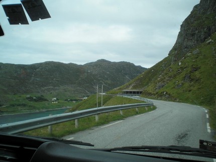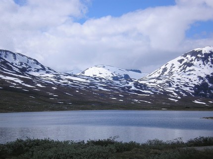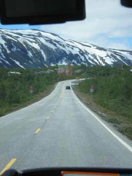 Rano śniadanko w pensjonacie i dalsza droga do Honingsvag. Faktycznie E6 jest otwarte tyle, że na dwóch odcinkach z których każdy ma ok. 1 km lub trochę ponad jedziemy szutrówką a z E6 zostały wyrwy spłukane do rzeki. Nad jakimś strumieniem mostku brak, wziął i popłynął. Trasę ponad 800km dzień wcześniej pokonujemy w ponad 10h i trasę coś ok. 450km pokonujemy w czasie podobnym. Kawałek za noclegiem, w Lillehammer zaczynają się góry a w miejscowości Otta gdzie zjeżdżamy na drogę nr. 15. To już są góry po całości. Miejscami szybkość ponad 30km/h grozi śmiercią lub kalectwem szczególnie gdyby autko zwaliło się w przepaść kilkudziesięciu metrów albo np. 200. I tak wygląda droga przez następne ponad 320km. Wolna jazda a do tego zapierające dech widoki powodują że co jakiś czas stajemy robić zdjęcia.